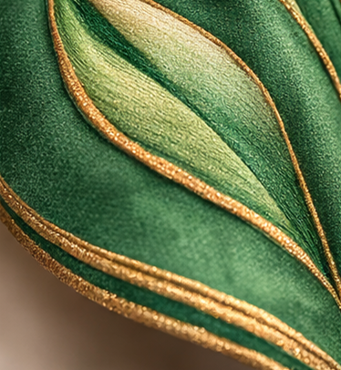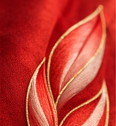 Il motivo decorativo della collezione segue un ritmo sereno, che esalta in modo naturale la forma del paramento liturgico e mantiene l'equilibrio dell'intera composizione