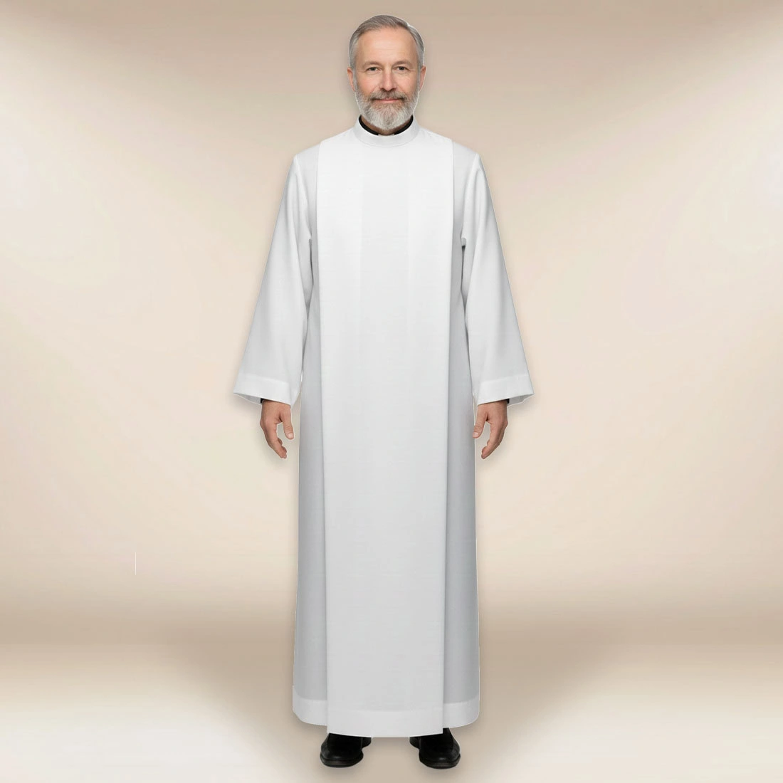 Il materiale con cui è realizzato il Camice Liturgico è leggero e morbido, il che garantisce comfort anche durante il servizio prolungato. Il taglio classico conferisce alla silhouette un aspetto ordinato e curato, mentre la cucitura accurata fa sì che l’abito si adatti bene ai movimenti. Grazie al suo design senza tempo, i Camici Liturgici possono essere utilizzati in tutti i periodi dell’anno liturgico.