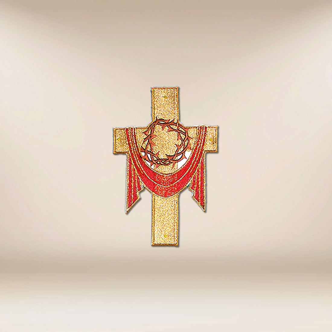 La simbologia del ricamo favorisce la concentrazione nella preghiera e la riflessione sul mistero della Redenzione. La Croce con spine è segno della vittoria dell’amore sul peccato e sulla morte, e la sua forma sobria, ma espressiva, fa sì che l’applicazione si inserisca perfettamente nelle celebrazioni di carattere penitenziale e pasquale. È un motivo che parla in modo semplice e chiaro alla sensibilità dei fedeli.