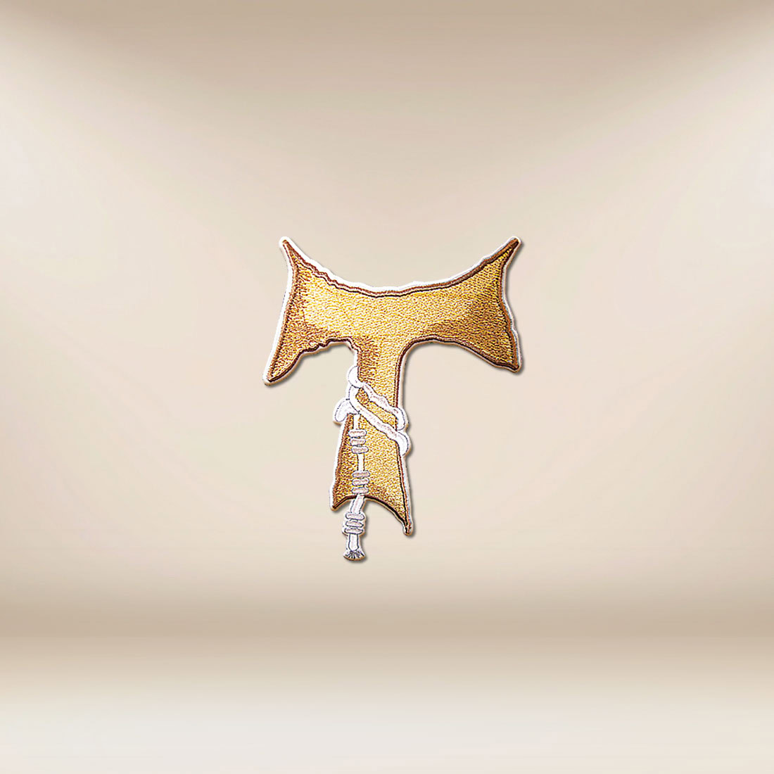 Il simbolismo del Tau ricorda l’invito alla penitenza, alla pace e all’amore fraterno, così caratteristici del carisma francescano. La forma minimalista del ricamo, priva di ornamenti superflui, sottolinea il carattere ascetico del segno e permette di concentrarsi sul suo messaggio spirituale. I contorni sottilmente elaborati e le proporzioni armoniose rendono l’applicazione un motivo sacro universale, adatto sia alla liturgia quotidiana che alle celebrazioni religiose solenni.
