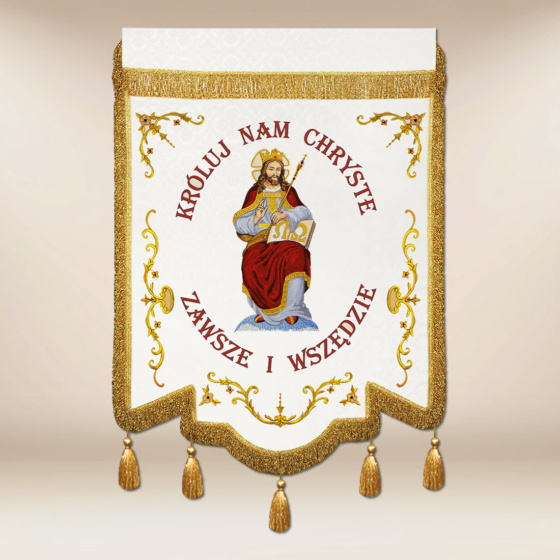 Urbanowicz Haft Polska — artigianato affidabile, eleganza del dettaglio e significato spirituale intrecciati in una sola bandiera.
