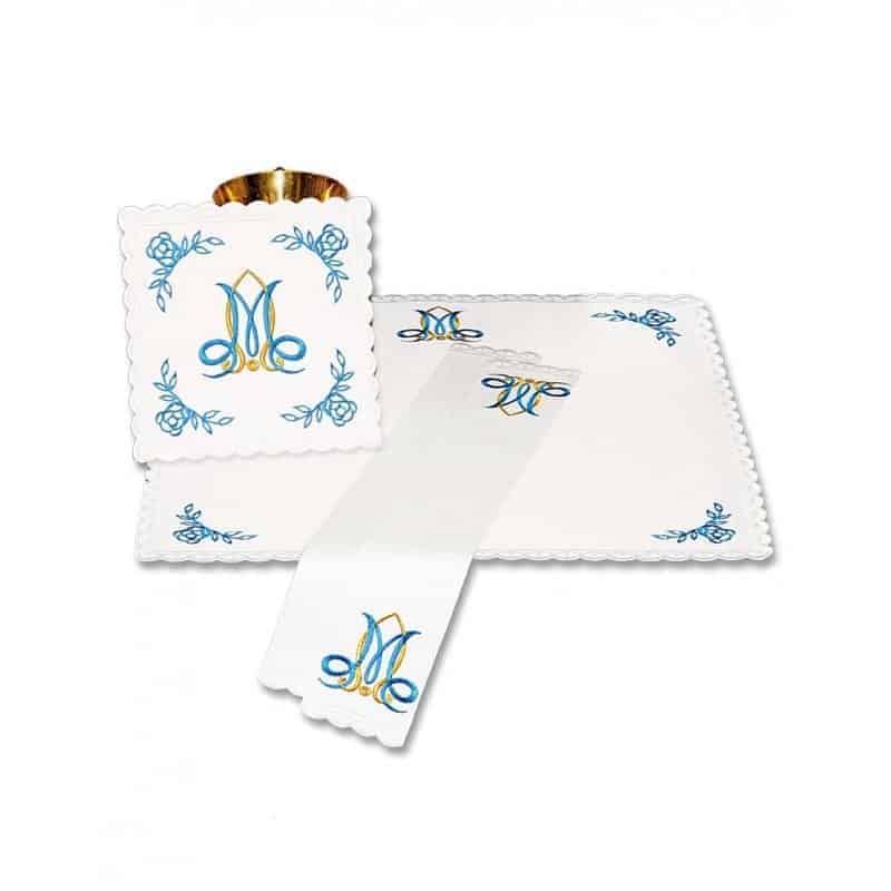 La biancheria per calice mariana “Blu Mariano” rappresenta un equipaggiamento indispensabile per l’altare nelle parrocchie, cappelle e comunità religiose, ed è anche una proposta preziosa per un dono liturgico.