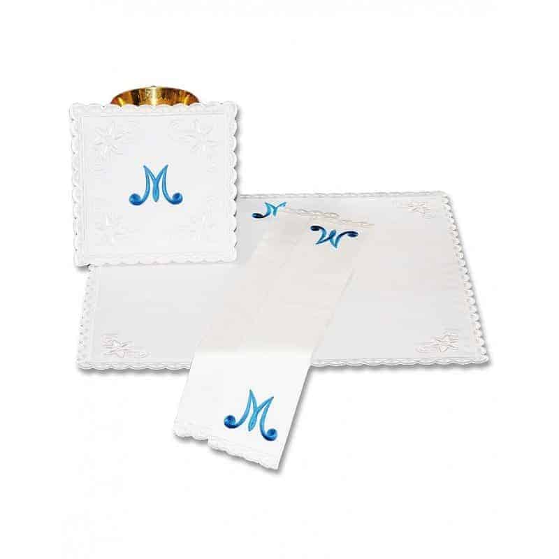 Biancheria per calice mariana „Mariana Fiorentina” rappresenta un’elegante dotazione per l’altare in parrocchie, cappelle e comunità religiose, e si rivela anche un prezioso dono liturgico.