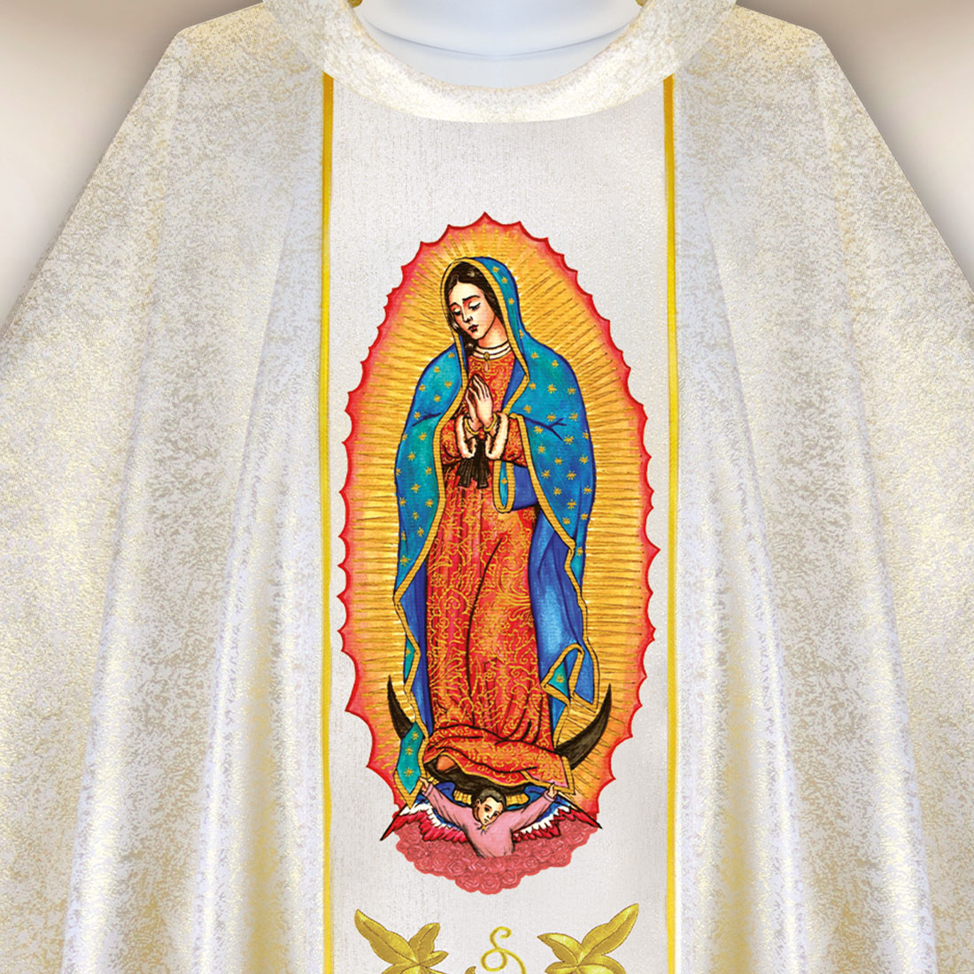 Ogni dettaglio è stato elaborato con cura per il carattere tradizionale, mantenendo al contempo un’estetica moderna. Casula ricamata Madonna di Guadalupe unisce in sé bellezza, contenuto simbolico e vantaggi pratici, rimanendo una veste che arricchisce la celebrazione liturgica.