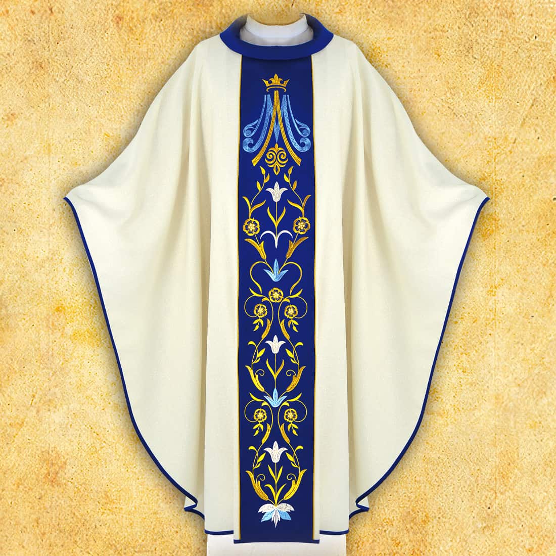 Questa casula unisce simbolismo mariano, eleganza e funzionalità, ideale per le celebrazioni solenni e i servizi dedicati alla Madre di Dio. La casula ricamata mariana a un buon prezzo può essere una scelta eccellente per ogni parrocchia.
