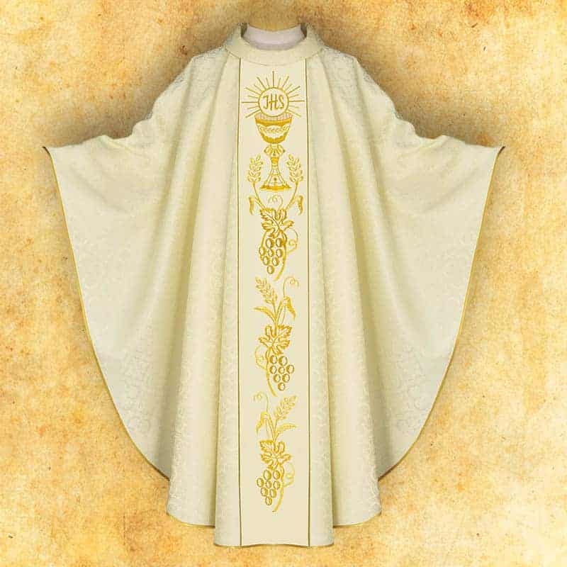Casula con orphrey ricamato è una veste liturgica per i sacerdoti che desiderano unire la bellezza della tradizione con uno stile liturgico raffinato.