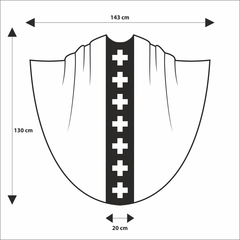Il ricamo è presente sia davanti che dietro, creando una simmetria completa e una linea decorativa uniforme. Grazie a ciò, il vestimento si presenta armoniosamente da ogni prospettiva – durante la processione, la liturgia della parola e la celebrazione eucaristica. I bordi e tutti gli elementi di finitura sono stati progettati con la massima cura, secondo il principio che il vestimento liturgico deve unire bellezza, funzionalità e durata.