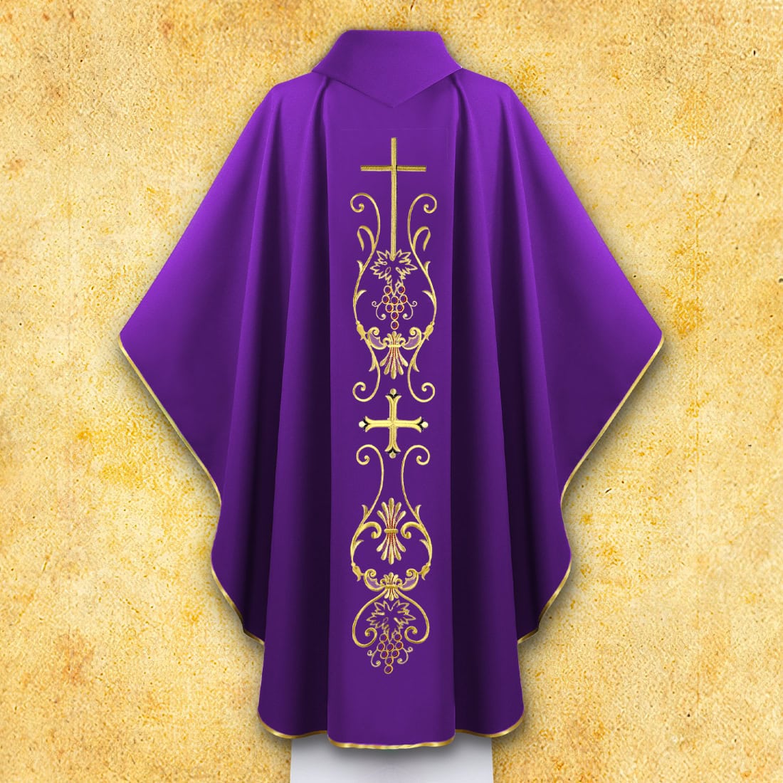 Il set include una stola interna abbinata, realizzata con lo stesso tessuto, garantendo così una coerenza stilistica. La taglia universale fa sì che la casula si adatti naturalmente a qualsiasi silhouette del celebrante. La casula liturgica con motivo della croce è destinata alla liturgia, in cui la bellezza della forma rafforza il carattere di preghiera della celebrazione.