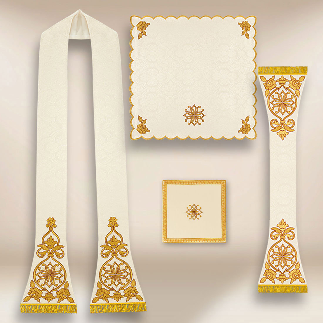 Scopri anche le altre casule romane ricamate in ecru disponibili nella nostra offerta.