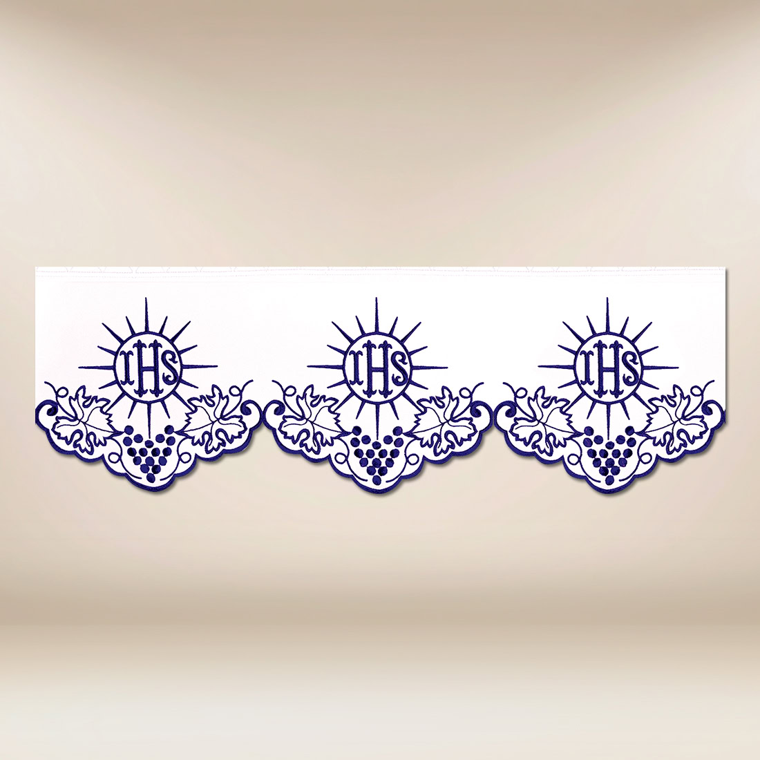 Il ricamo è eseguito con precisione, il che consente al motivo di mantenere leggibilità e bellezza anche con un uso frequente. L’altezza di 23 cm permette una finitura espressiva ed elegante della tovaglia d’altare, senza dominare l’intera composizione. La coroncina è stata progettata per co-creare armoniosamente l’allestimento liturgico in chiesa o cappella, integrandosi perfettamente con gli altri elementi del set Cristiano.