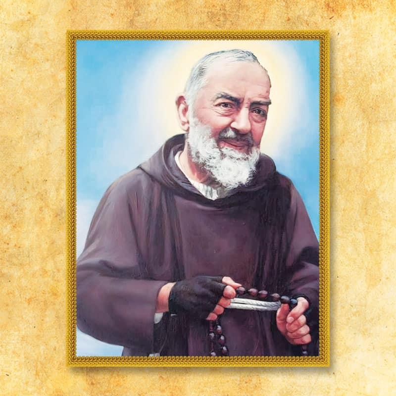 Decorazione liturgica grande fotografica è stata progettata per spazi in cui l’immagine supporta la preghiera e la concentrazione. L’immagine di san Pio da Pietrelcina con il rosario ricorda la forza della preghiera perseverante, la fiducia in Dio e la vicinanza dei santi nella vita quotidiana della Chiesa. La decorazione si presenta magnificamente nel presbiterio, presso l’altare laterale, nella cappella, nella sala catechistica o nella casa di ritiro, creando un’atmosfera di silenzio e riflessione.