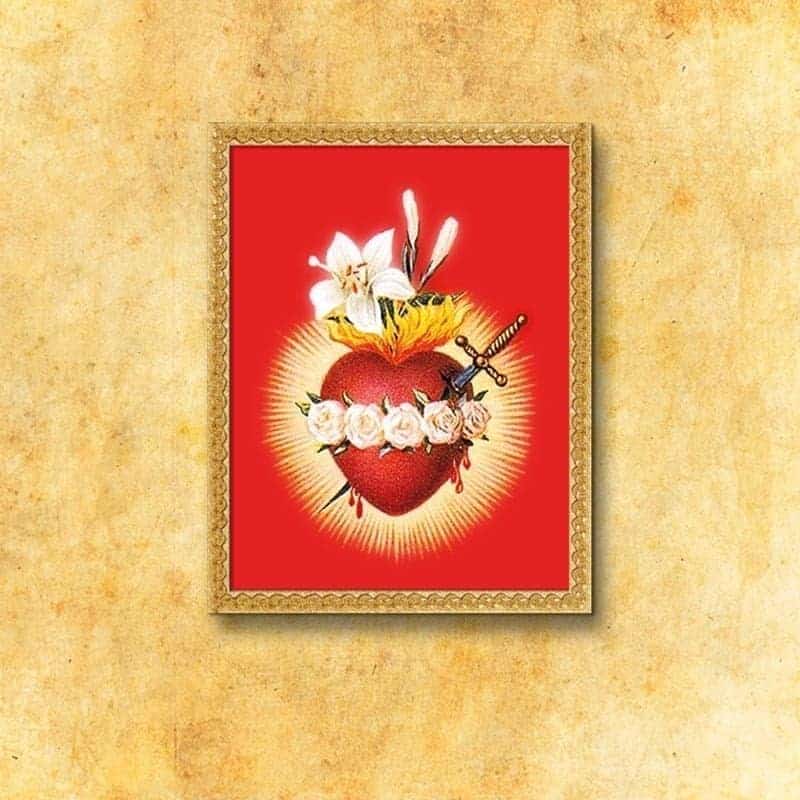 Immagine Cuore di Maria è stata creata pensando ai luoghi in cui la spiritualità incontra la bellezza. L’immagine del Cuore Immacolato, circondato da luce e fiori, ricorda l’amore della Madre che conduce a Cristo. L’immagine Cuore di Maria completa naturalmente l’arredamento della chiesa, della cappella religiosa, della sala di preghiera o dello spazio domestico di meditazione.