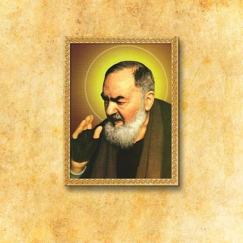 Immagine sacra su tessuto con S. Padre Pio è una proposta per coloro che desiderano introdurre nell’ambiente di preghiera l’immagine del noto confessore e guida spirituale. Questa immagine sacra su tessuto rappresenta il santo nel gesto di benedizione — come guida e intercessore nei momenti difficili.