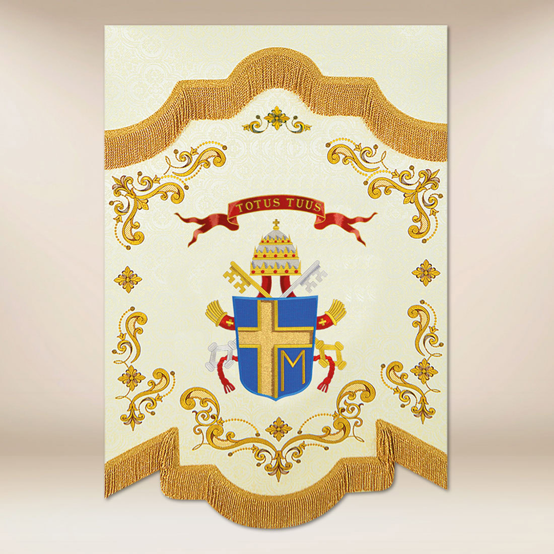 Mini stendardo bifacciale Giovanni Paolo II — nello spirito della tradizione e dell’artigianato accurato — è una proposta creata pensando alla preghiera e alla bellezza della liturgia.