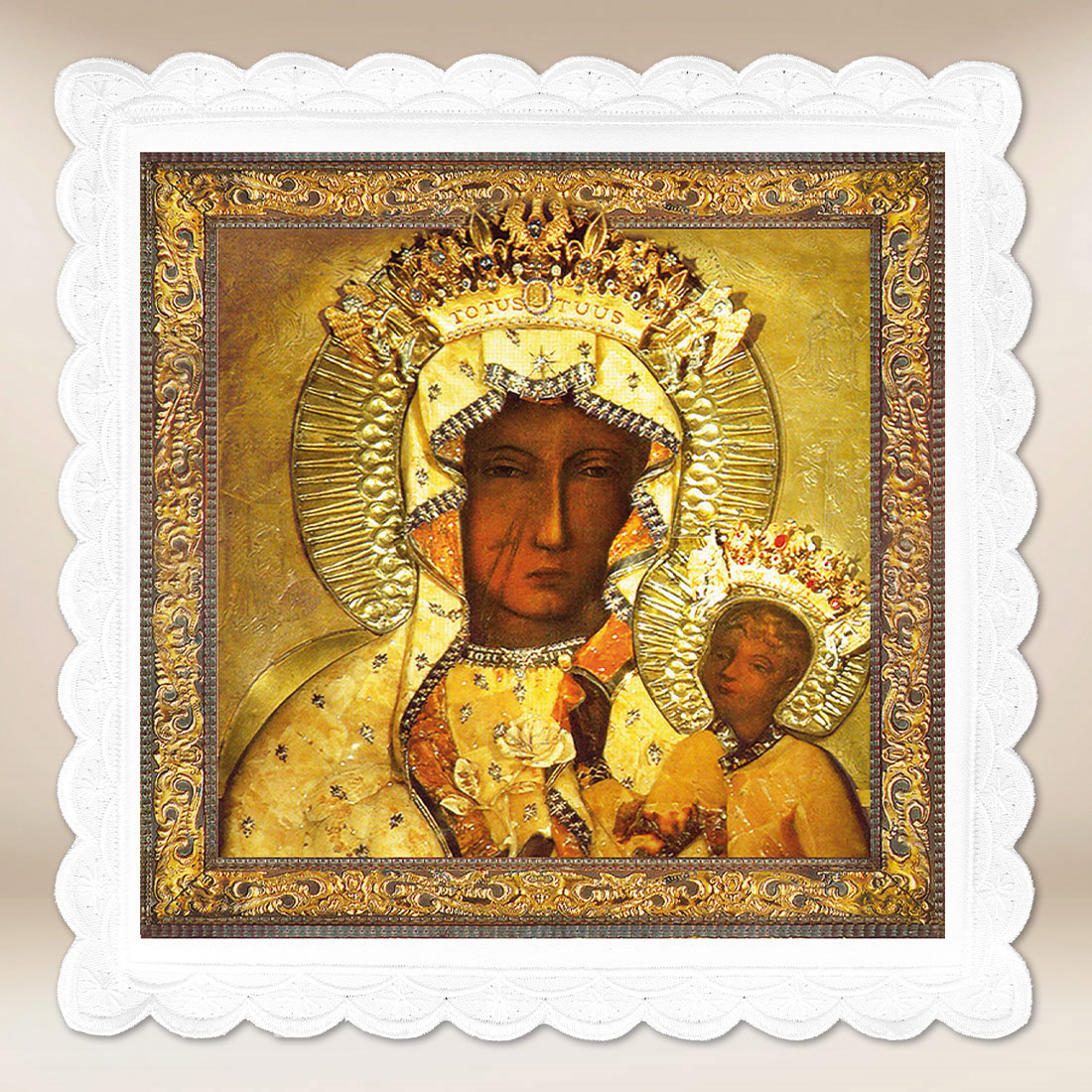 La palla fotografica presenta l’immagine della Madonna di Częstochowa – Regina di Polonia, una delle icone mariane più importanti nella tradizione cristiana. La ricca colorazione e la fedele riproduzione dei dettagli fanno sì che ogni Santa Messa con la sua presenza assuma un carattere unico e di preghiera. Il volto di Maria e del Bambino emana tranquillità, cura e profondità spirituale, invitando alla contemplazione e alla fiducia.