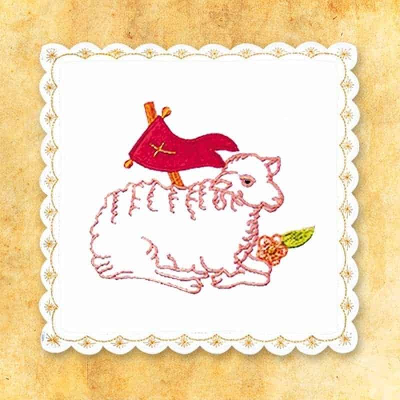 Palla ricamata bianca Baranek è un elegante e simbolico elemento del Servizio da messa, decorato con l’immagine dell’Agnello di Dio – uno dei simboli più antichi e profondi del cristianesimo. L’agnello che regge lo stendardo della vittoria ricorda la redenzione e il trionfo di Cristo sul peccato e sulla morte.