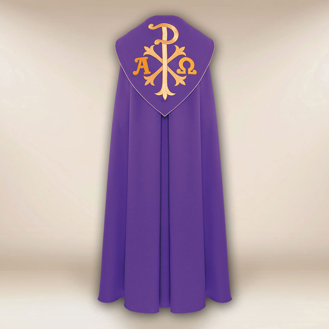 Piviale ricamato viola Alfa Omega PX è una scelta eccellente per l’adorazione, le processioni, i servizi penitenziali, le celebrazioni durante il periodo di Quaresima e tutte le festività che richiedono una veste di profonda simbolica e aspetto rappresentativo. Il piviale è rifinito con cura, rendendolo un elemento durevole e bello dell’arredamento parrocchiale.