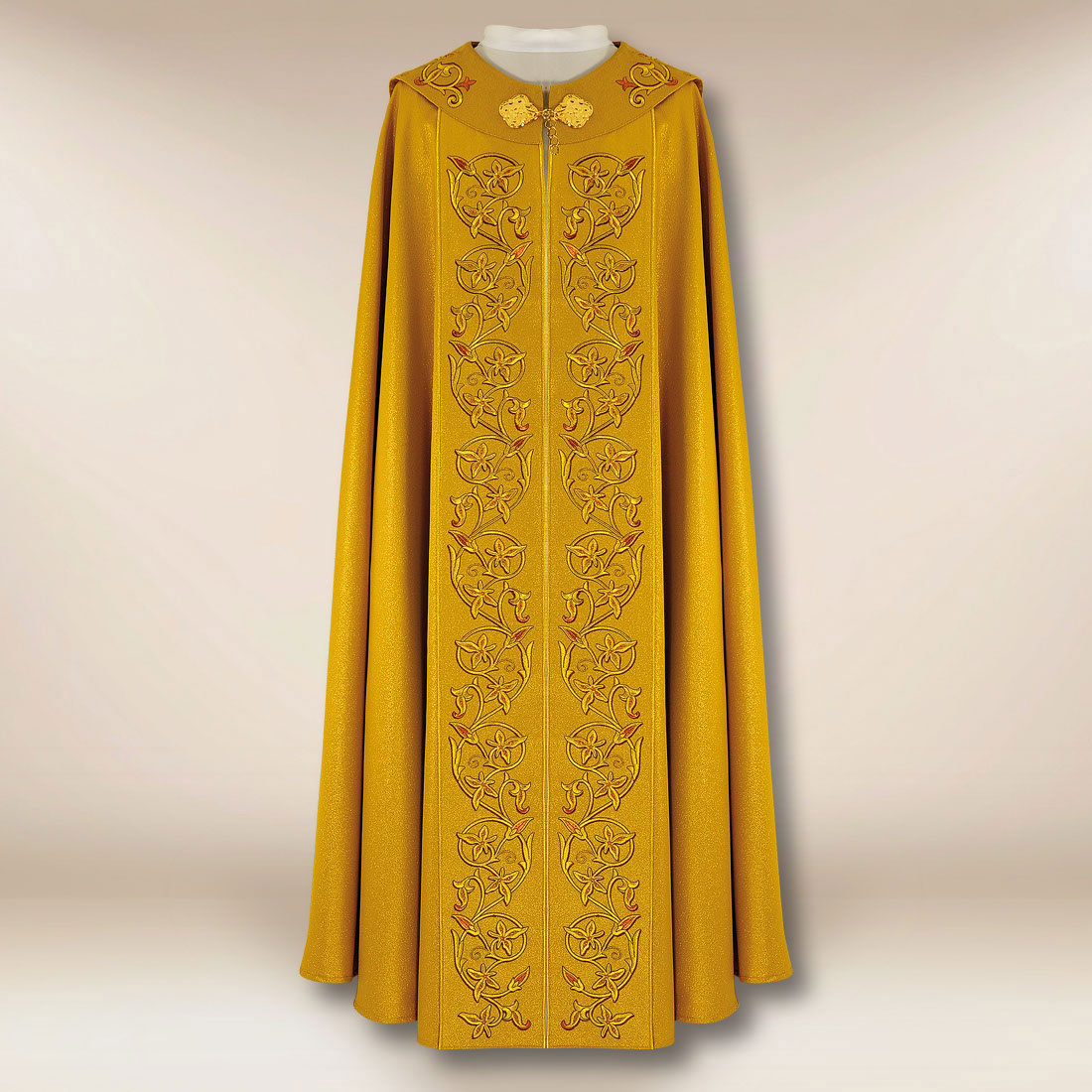 La taglia universale rende il piviale adatto a ogni sacerdote e si adatta perfettamente alla figura, mantenendo piena libertà di movimento.