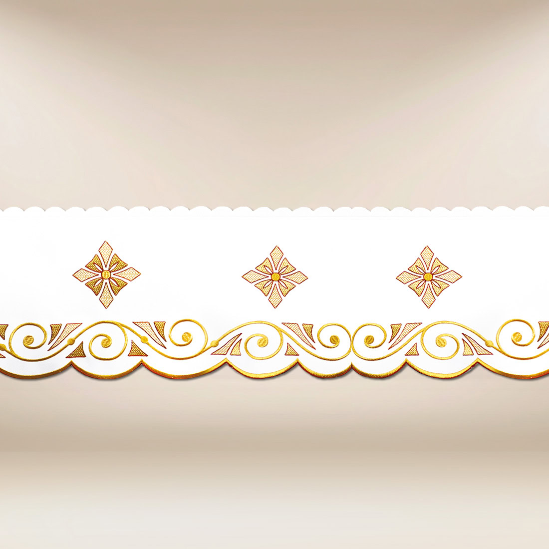 Il pizzo ricamato natalizio è un’ottima proposta per le parrocchie che si prendono cura dell’estetica dell’altare e della cornice liturgica della Messa. L’alta qualità della realizzazione e il dettaglio curato distinguono il prodotto rispetto alle decorazioni standard.