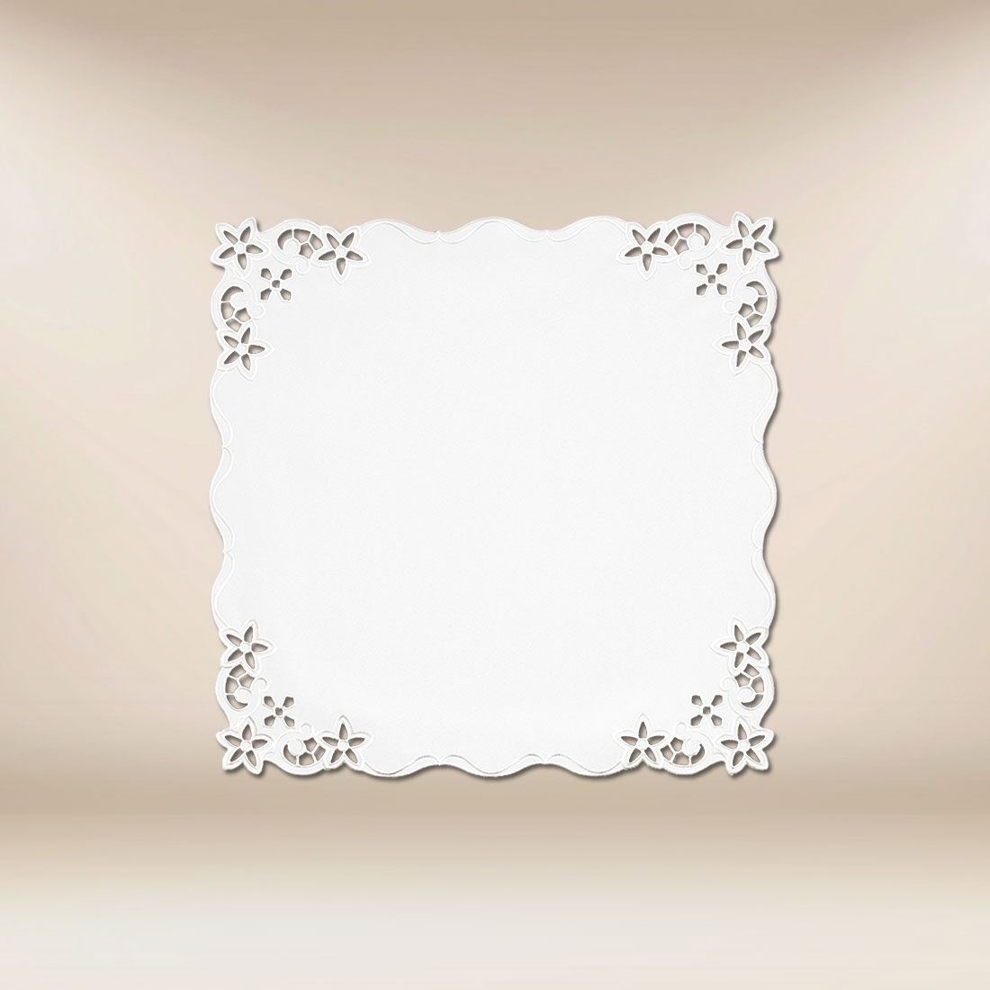 Il tovagliolo ricamato “Florencki” nelle dimensioni 45×45 cm è una proposta elegante che completa esteticamente lo spazio dell’altare. I delicati motivi floreali, disposti agli angoli, creano un insieme armonioso, mantenendo la solennità liturgica e l’estetica senza tempo. La linea di finitura con morbide onde aggiunge coerenza e un carattere delicato.