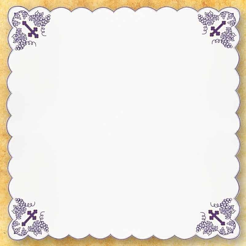 Il tovagliolo ricamato per la Quaresima 95×95 è un elegante elemento della biancheria da altare, pensato per celebrare la liturgia durante il periodo quaresimale. Su uno sfondo bianco sono state ricamate quattro composizioni di croci circondate da grappoli d’uva, che conferiscono al tovagliolo un simbolismo unico che rimanda al sacrificio di Cristo e al mistero dell’Eucaristia. Questo delicato motivo fa sì che il prodotto sottolinei il carattere di penitenza, riflessione e calma spirituale.