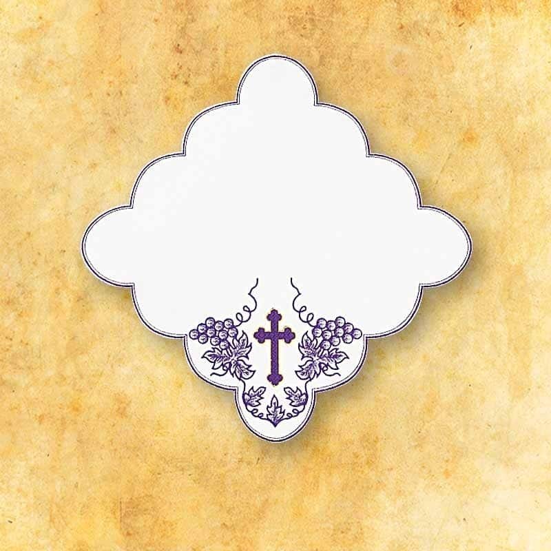 Il tovagliolo ricamato quaresimale 32×32 è stato progettato per preparare l’altare in modo dignitoso e simbolico durante il periodo della Quaresima. La composizione del ricamo raffigura una croce circondata da un motivo di uva, che costituisce un profondo riferimento al Sacrificio di Cristo e all’Eucaristia. Il colore viola sottolinea il carattere di penitenza, riflessione e concentrazione spirituale che accompagna questo tempo liturgico.