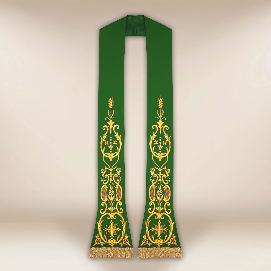 La finitura include un ricamo preciso e frange dorate, che conferiscono alla veste eleganza e un carattere sacro. Il prodotto ha una taglia universale, garantendo comfort e adattamento per ogni sacerdote.