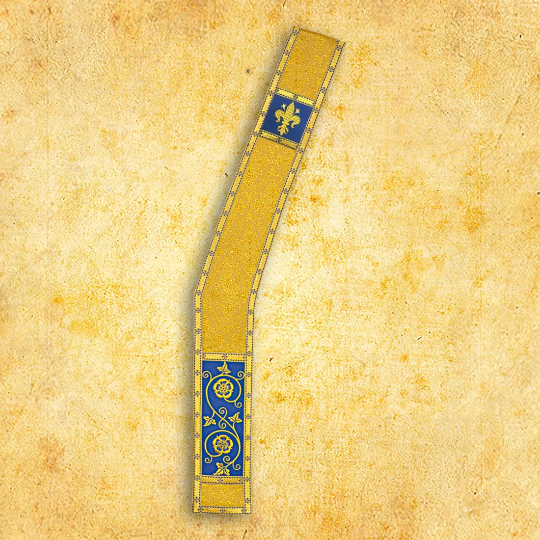 La stola ricamata diaconale Musche di San Giacomo unisce la bellezza dell’artigianato liturgico, il comfort e il simbolismo spirituale, diventando un elemento indispensabile delle vesti diaconali nei colori oro e blu.