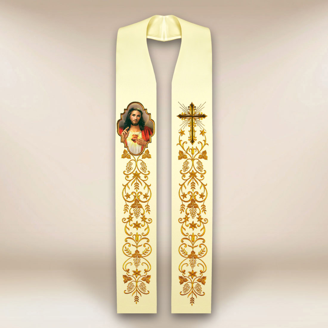 Il set include due colletti tagliati al laser che stabilizzano la posizione delle Stole sacerdotali e ne aumentano il comfort. Le stole sacerdotali sono perfette per le messe, le processioni, le funzioni religiose del primo venerdì del mese e le celebrazioni legate al culto del Sacro Cuore di Gesù.