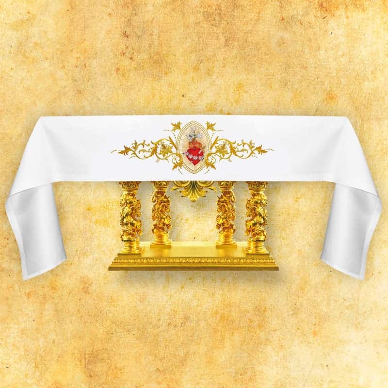 Tovaglia ricamata liturgica Cuore di Maria rappresenta un’offerta unica per le parrocchie che apprezzano l’eleganza, la simbolica spirituale e l’alta qualità di realizzazione.