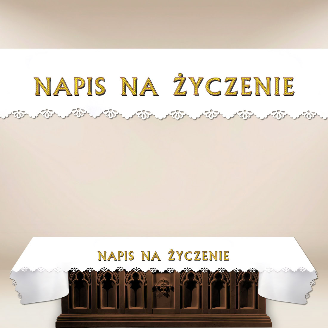 Tovaglia foto tagliata al laser è una decorazione per l’altare che sottolinea particolarmente il carattere solenne e pacifico della celebrazione. Il testo è realizzato con la tecnica della sublimazione termica. L’effetto di imitazione del ricamo conferisce nobiltà, garantendo al contempo durata e leggibilità.