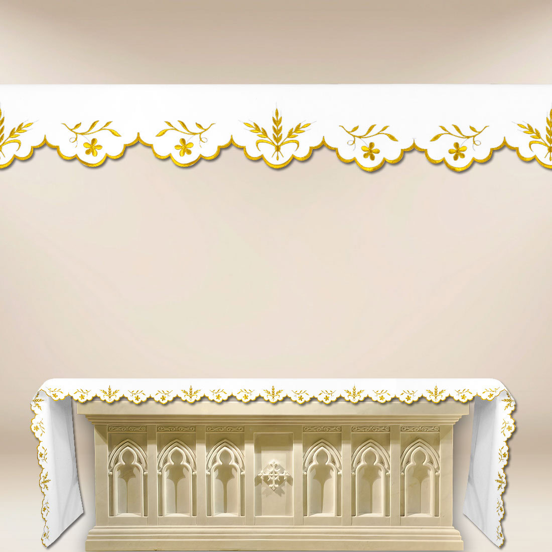 La tovaglia liturgica „Serie Oro” è un elemento elegante dell’arredo dell’altare, realizzato in alta qualità tessuto poliestere (100%).