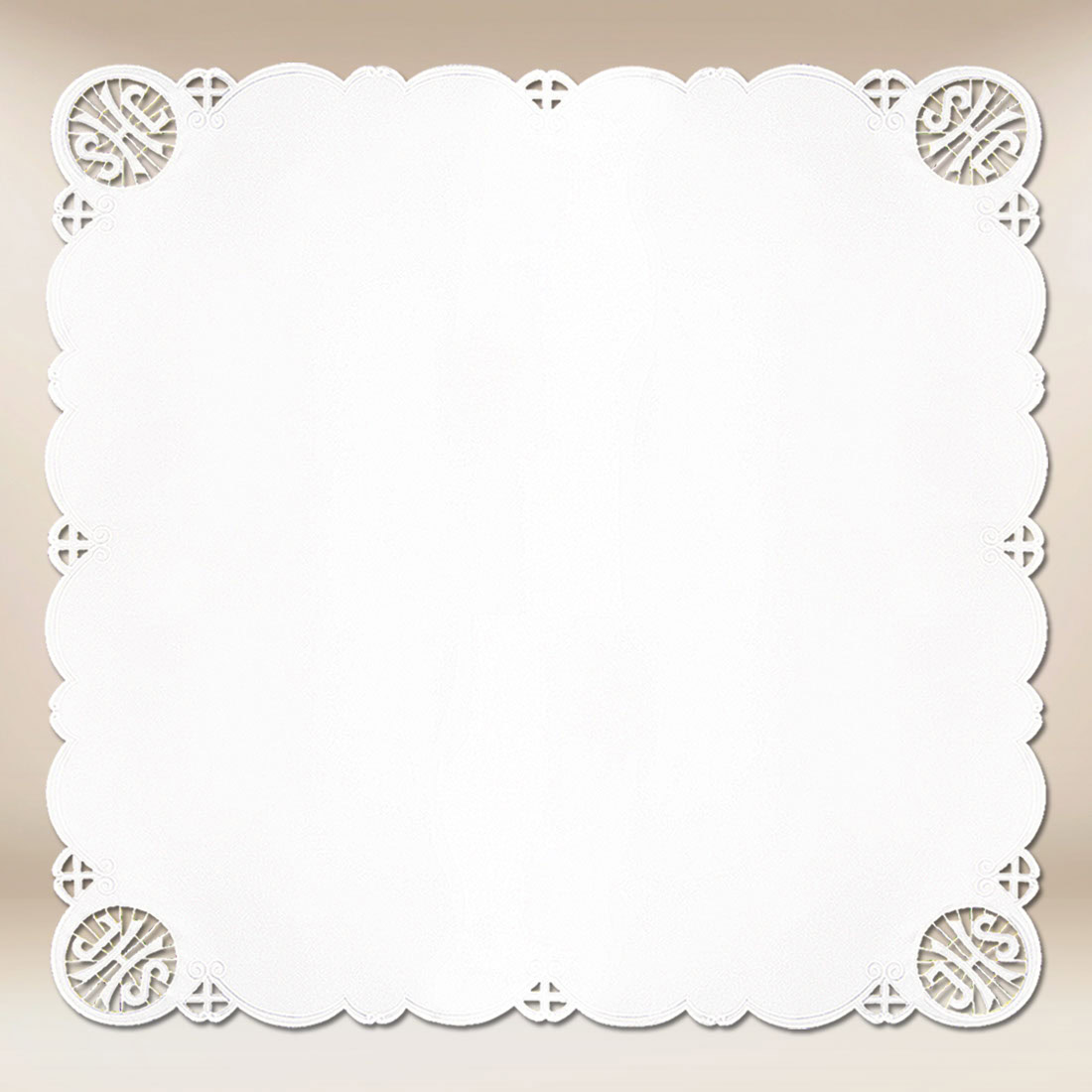 La tovaglietta non solo abbellisce, ma contribuisce anche a creare un’atmosfera di calma, preghiera e profondità spirituale. Il suo carattere classico la rende perfettamente compatibile sia con l’arredamento tradizionale del tempio che con le moderne disposizioni. È inoltre ideale per grandi celebrazioni, come matrimoni, feste ecclesiali, prime comunioni o adorazioni.