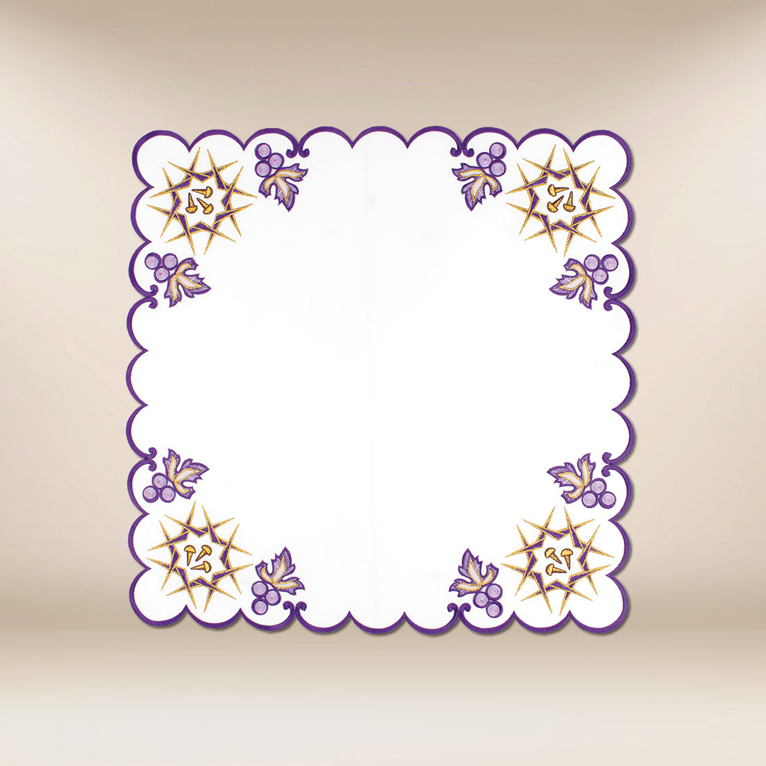 La disposizione armoniosa delle decorazioni e la forma classica fanno sì che la tovaglietta diventi non solo un’aggiunta funzionale, ma anche un segno liturgico chiaro che aiuta nella concentrazione e nella riflessione orante.