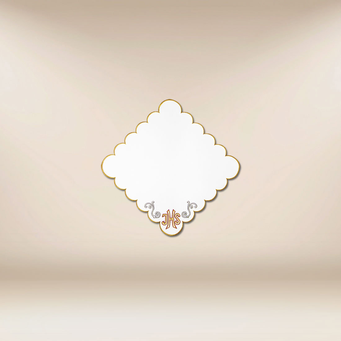 Tovaglietta ricamata liturgica „San Marino” 32×32 è stata progettata per un’elegante e dignitosa celebrazione delle liturgie eucaristiche. La sua forma caratteristica e il ricamo realizzato con precisione in tonalità dorata fanno sì che il prodotto sottolinei perfettamente la dimensione sacra della liturgia. Gli ornamenti che decorano il motivo centrale conferiscono alla tovaglietta leggerezza e armonia, creando una composizione bella nella sua semplicità. Questa tovaglietta ricamata liturgica si presenta splendidamente sia durante le Messe quotidiane che nelle celebrazioni solenni.