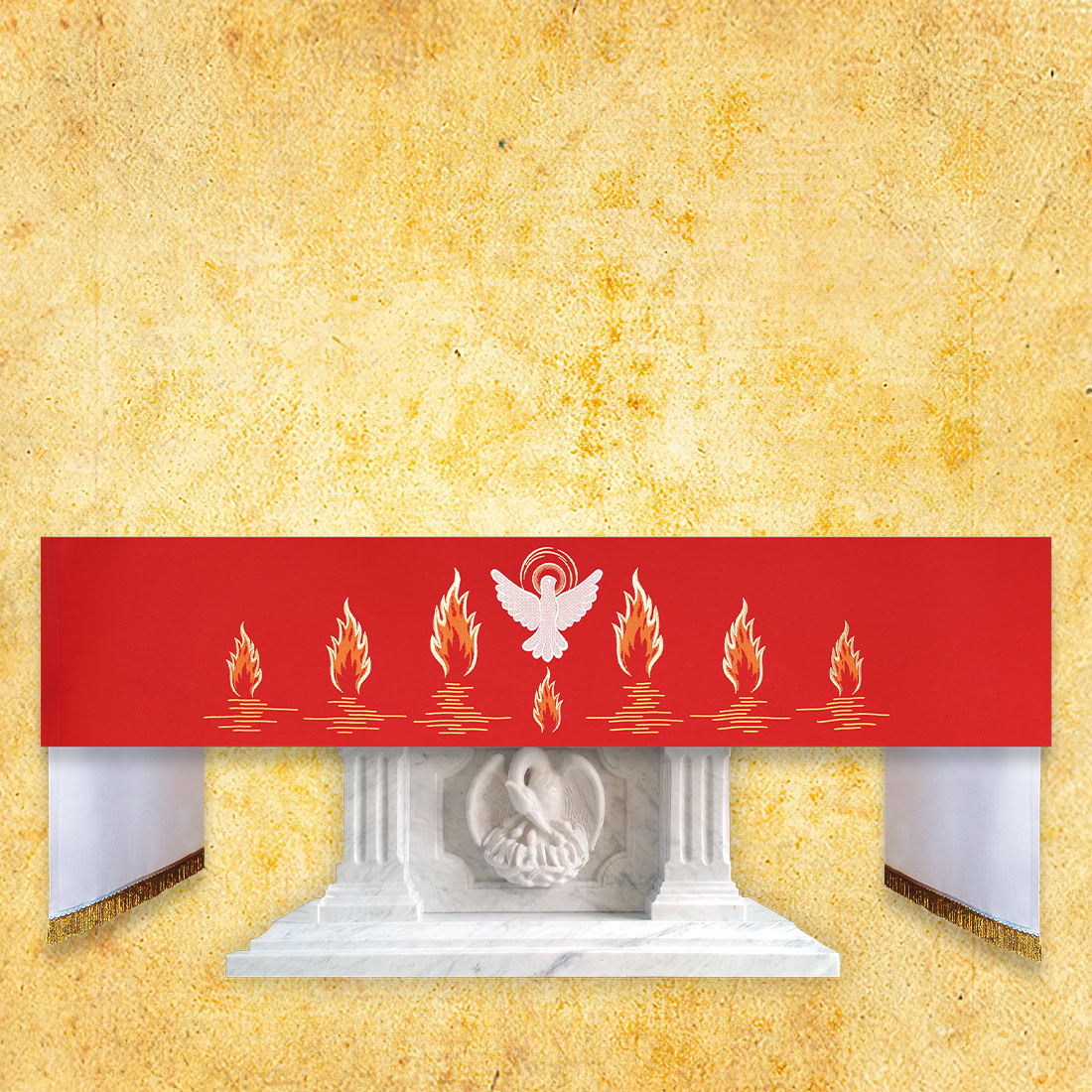 Antypendium haftowane z wizerunkiem Ducha Świętego w kolorze czerwonym, wykonane z wysokiej jakości tkaniny liturgicznej.