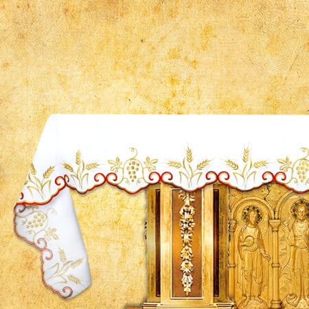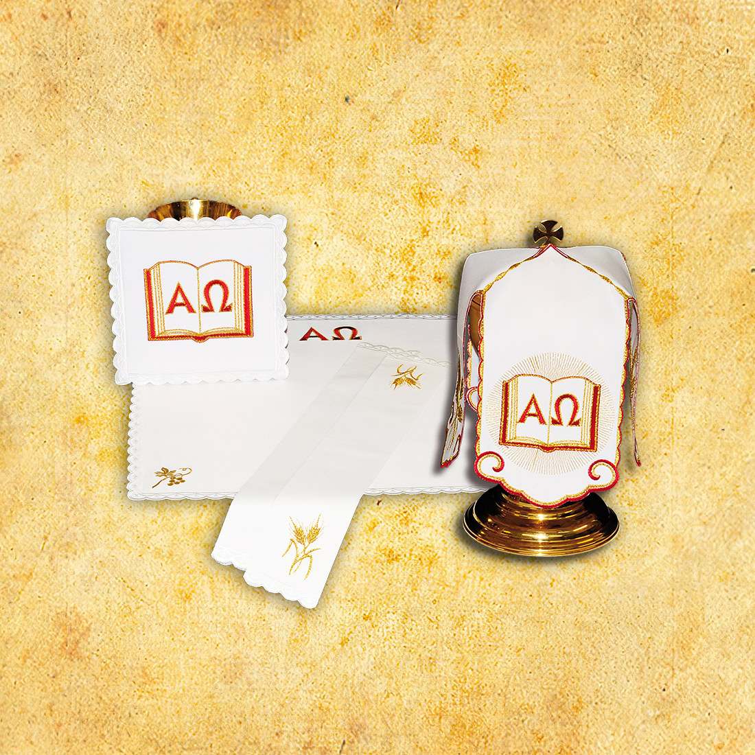 Puryfikaterz haftowany oraz ręczniczek haftowany wykonano ze śnieżnobiałego bardzo dobrze wchłaniającego płótna.