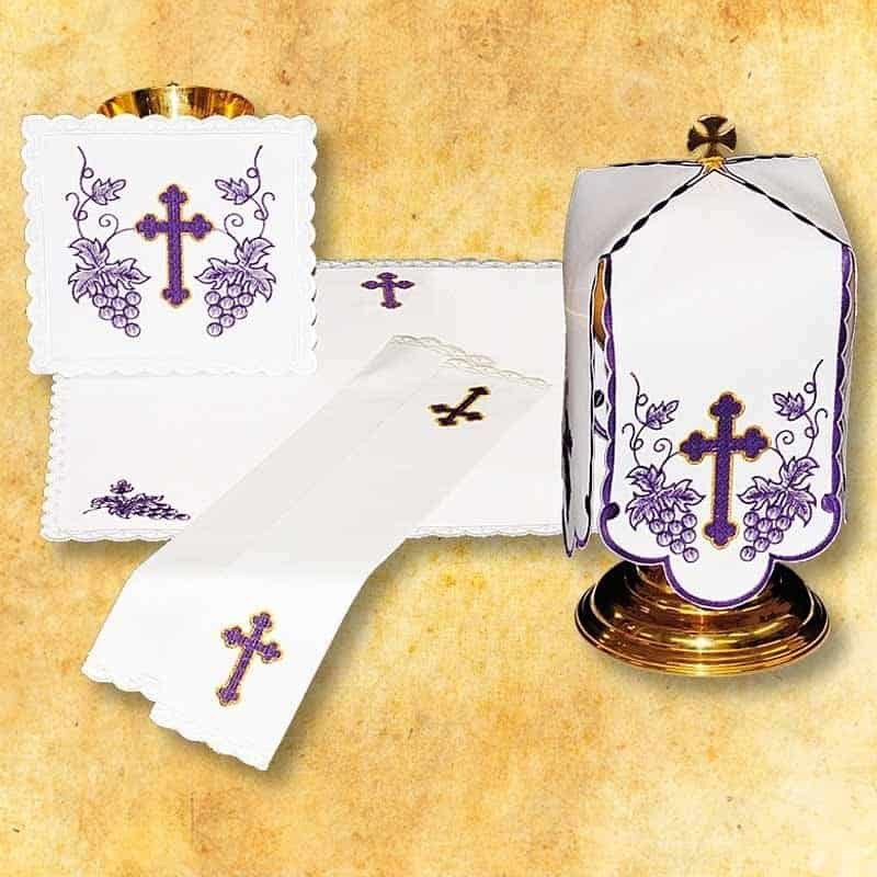 Ręczniczki haftowane oraz puryfikaterze haftowane wyprodukowano ze śnieżnobiałego dobrze wchłaniającego wodę płótna.