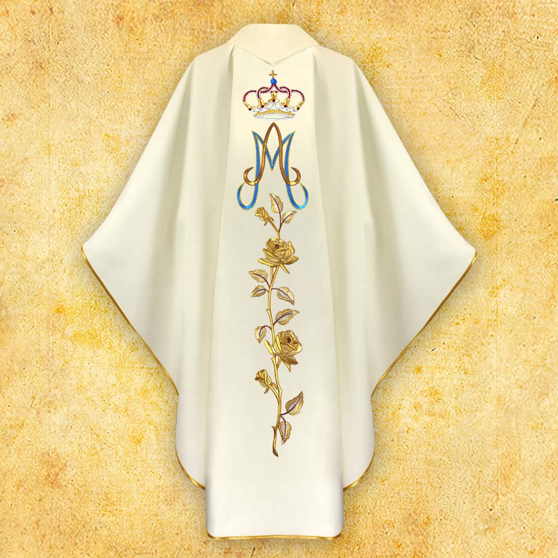 Elegancki haft podkreśla maryjny charakter szaty liturgicznej.