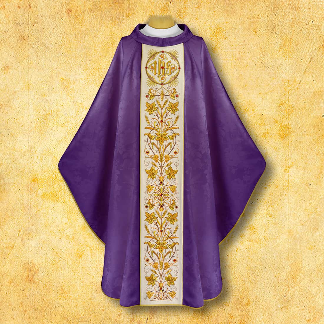Model ten łączy liturgiczną symbolikę, ręczne zdobienie i najwyższą jakość wykonania, stanowiąc wyjątkowy wybór dla parafii i celebracji o podniosłym charakterze.