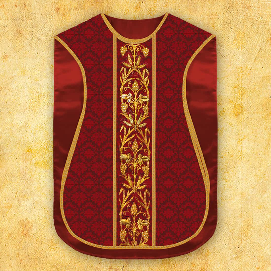Komplet składa się z ornatu, stuły, manipularza, welonu na kielich i bursy