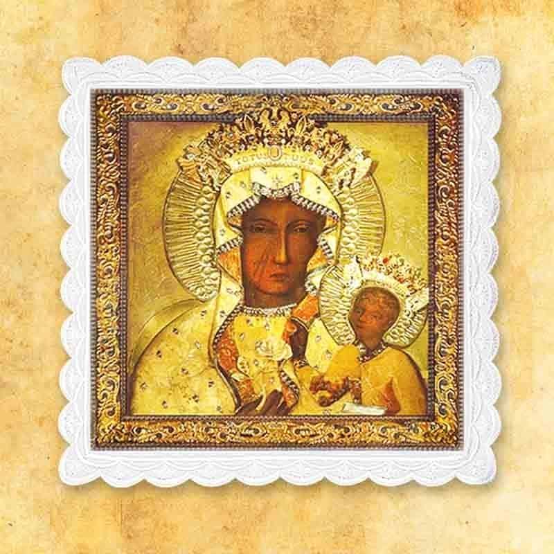Palka foto nr 30 z wizerunkiem Matki Bożej Częstochowskiej. Trwały nadruk, koronkowe wykończenie i wysoka jakość. Urbanowicz Haft Polska – tradycja i duchowość.