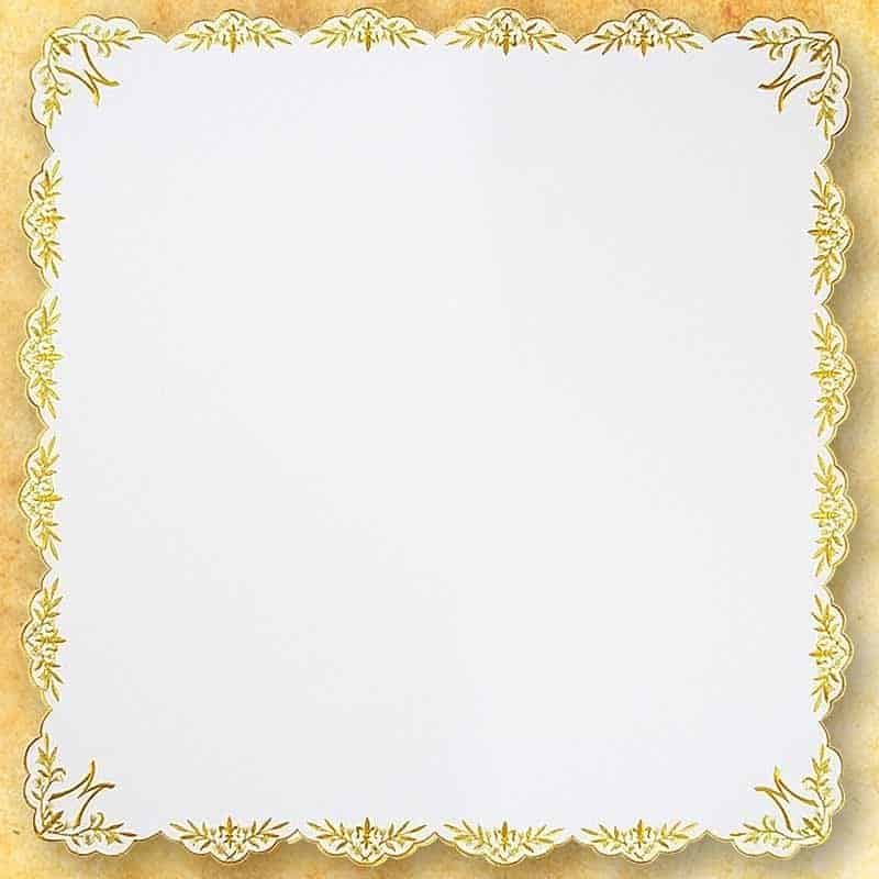 Liturgiczna serwetka ołtarzowa 110cm x 110cm wykonana z wysokiej jakości białej tkaniny poliestrowej (100%).