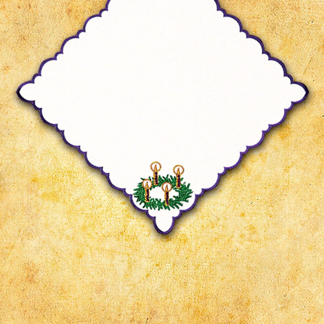 Serwetka haftowana “Adwentowy z wiankiem”.